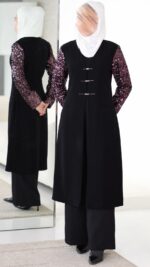 نوع القماش: كريب + ترتر
